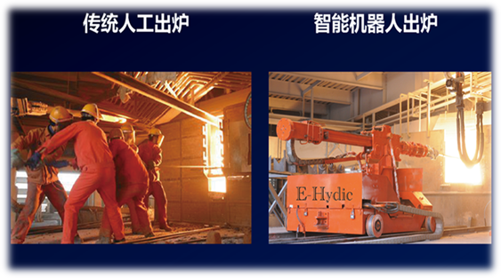 我公司自主研發(fā)生產(chǎn)的E-Hydic礦熱爐出爐機(jī)器人屬國內(nèi)首創(chuàng),達(dá)到國際領(lǐng)先水平。不但能夠?qū)⒆鳂I(yè)人員從安全風(fēng)險(xiǎn)高、勞動(dòng)強(qiáng)度大的惡劣工況中解放出來,而且能夠使生產(chǎn)工藝更加穩(wěn)定、作業(yè)效率明顯提高,單臺(tái)電石爐作業(yè)人員由原來的7-8人減少至2人,單臺(tái)電石爐生產(chǎn)成本可節(jié)約200萬元以上, 既保證安全生產(chǎn)又實(shí)現(xiàn)了減員增效。