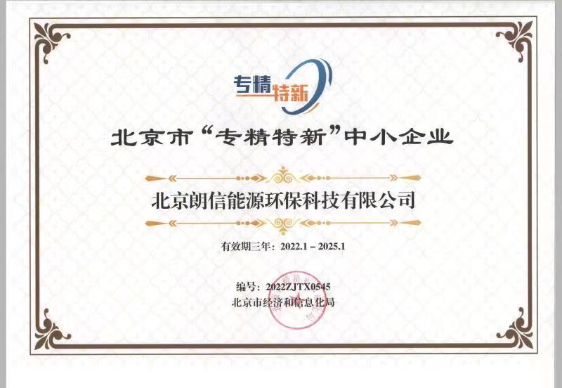 近日,我司“北京朗信能源環(huán)??萍加邢薰尽焙汀氨本├市胖悄芸萍加邢薰尽表樌ㄟ^(guò)“專(zhuān)精特新”中小企業(yè)評(píng)審,獲得由北京市經(jīng)濟(jì)和信息化局頒發(fā)的2022年北京市“專(zhuān)精特新”中小企業(yè)證書(shū)。